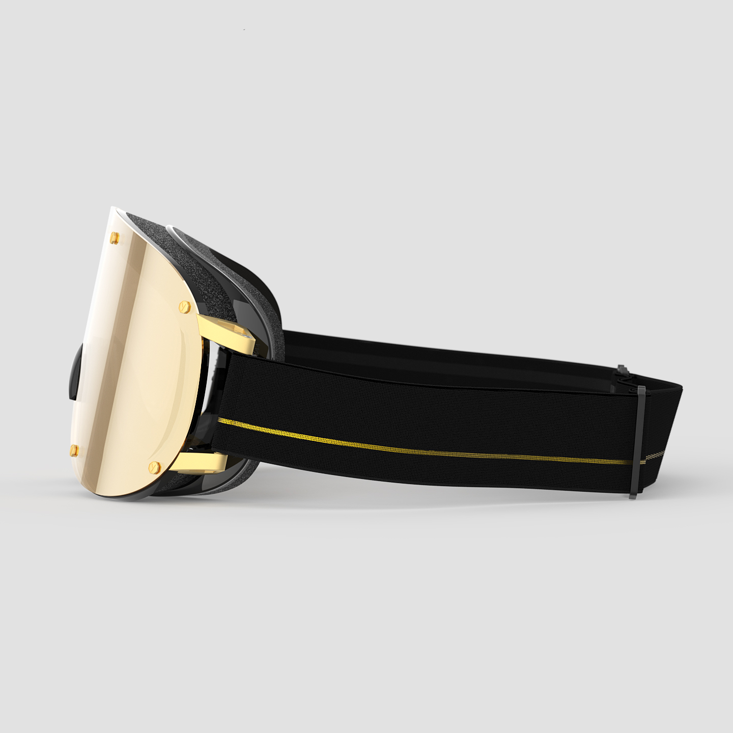 The Model Four is a masterpiece born from marrying minimalist design principles with techniques from high performance engineering. The result is an elegant ski goggle with refined metal hardware and rivets that take inspiration from luxury timepieces. Wrapped in a sleek ultra-luxurious goggle, experience expanded vision through our sophisticated PVT tri-lens technology and allow yourself to be immersed in an elevated mountain experience.